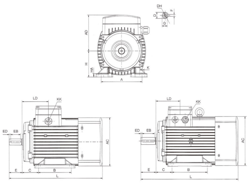 Класс защиты: Основной корпус двигателя имеет степень защиты IP54, IP55, но клеммная коробка имеет степень защиты IP55.